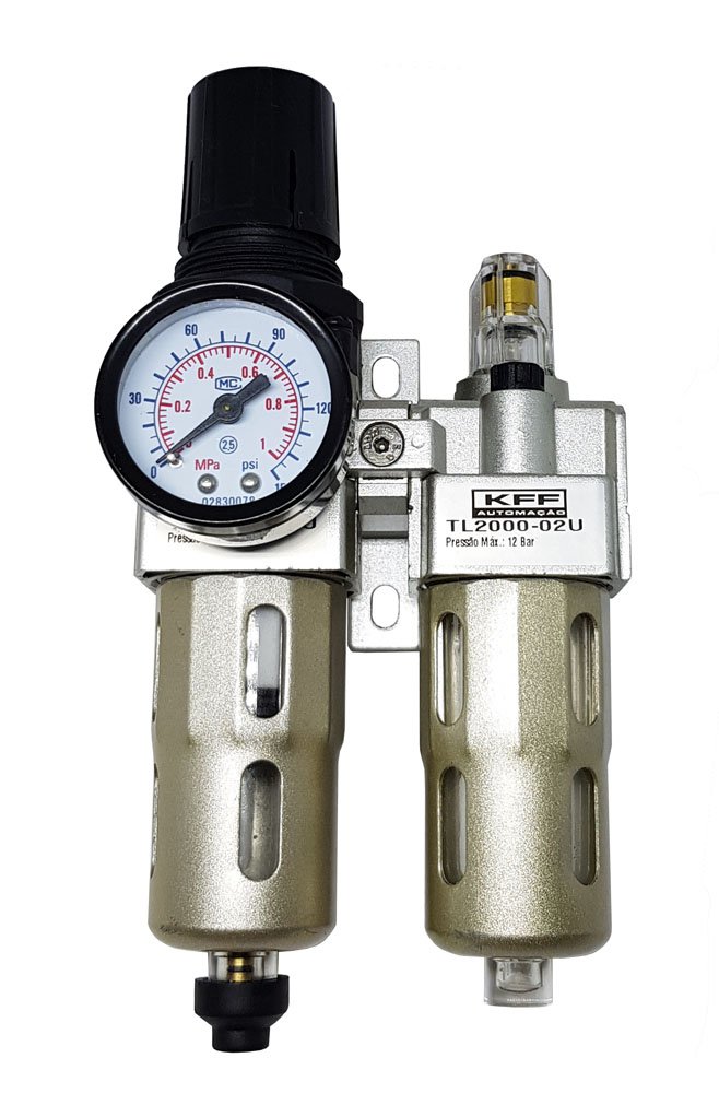 O conjunto lubrifil é um componente muito utilizado em redes de ar comprimido, onde é necessário regular, filtrar e lubrificar o ar da rede.